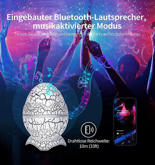 Dinosaur Egg Galaxy Projector: Night Light with Bluetooth Music